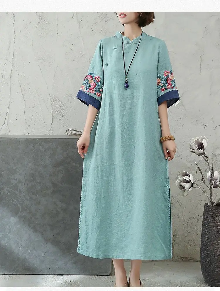 2025 new chinese embroidered hanfu qipao dress women traditional national style spring summer casual daily loose cheongsam