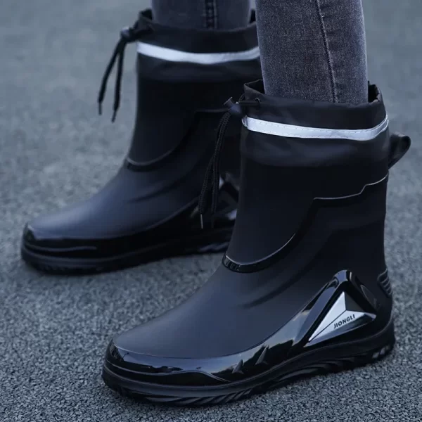 • Waterproof Material :Crafted from a robust plastic upper material, these rain boots provide excellent waterproof performance, keeping your feet dry in even the heaviest rain.