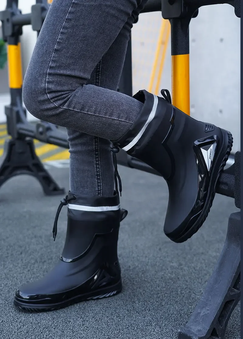 Waterproof Men’s Rain Shoes Outdoor Non-slip Work Shoes Fleece Lined Cotton Warm Rain Boots Kitchen Footwear Male